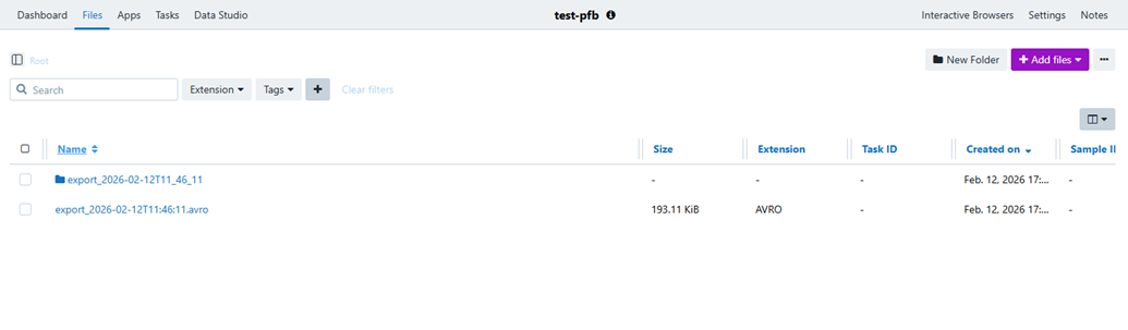 • Automatic import of the original PFB Avro file into the destination project.